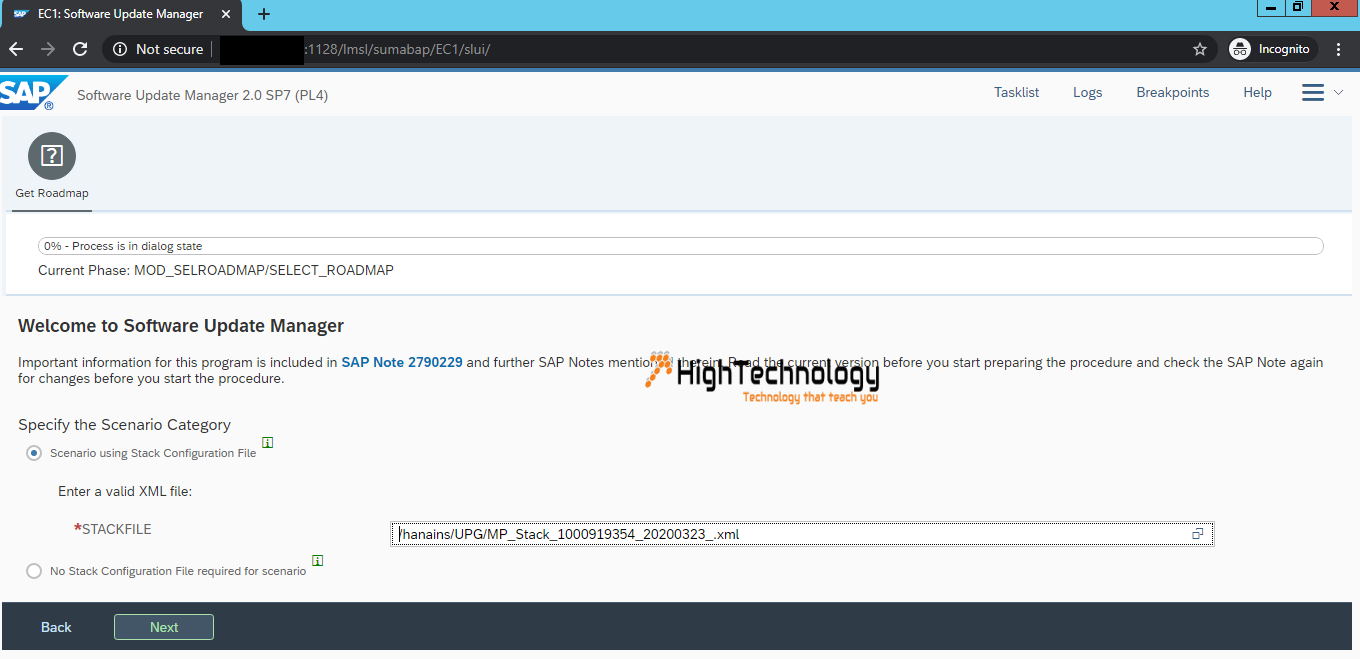 First of all Update SUM using SPAM. Then generate stack file.